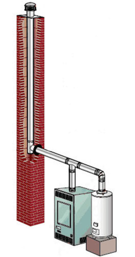 We install only AGA approved chimney lining materials that consist of double walled metal lining equipment from the top with a weather cap, down to the base of a chimney where your furnace and water heater connect into and ensure total containment of all exhausting gas.